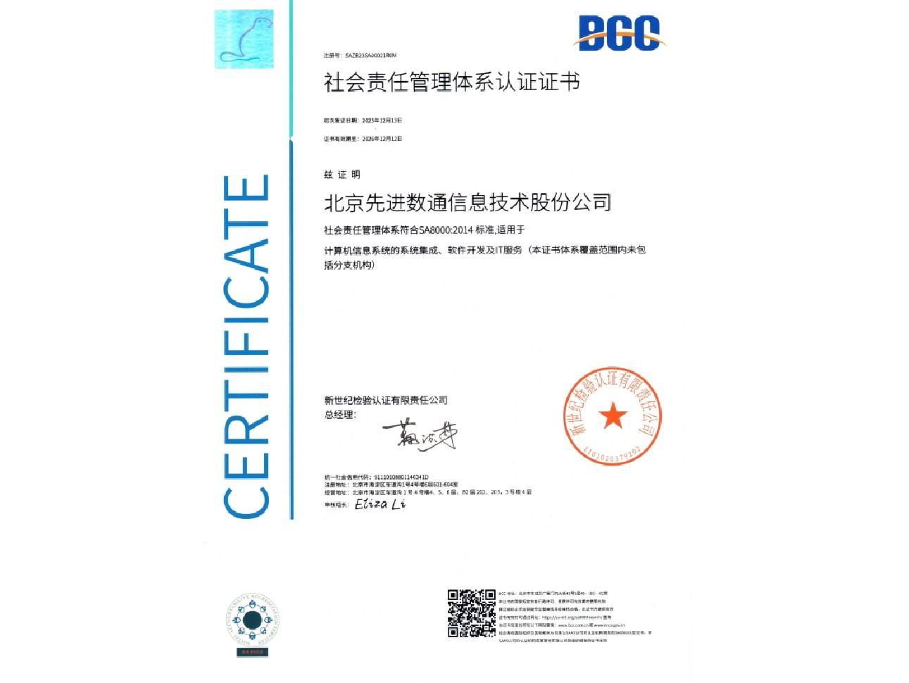 • 社会责任管理系统认证