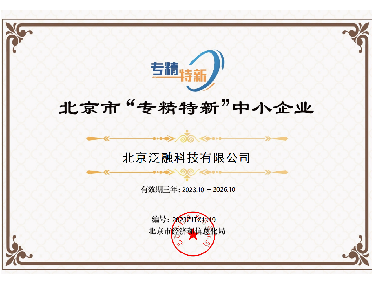 • 泛融科技荣获北京市“专精特新”中小企业声誉称呼